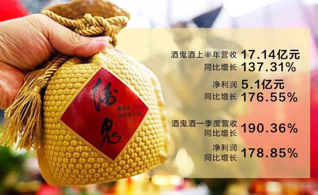 酒鬼酒上半年营收为17.14亿元,同比增长137.31%;净利润5.1亿元,同比增长176.55%。一季度时,酒鬼酒实现了营收同比增190.36%、净利同比增178.85%的成绩,可谓保持着连续的高增长势头。
