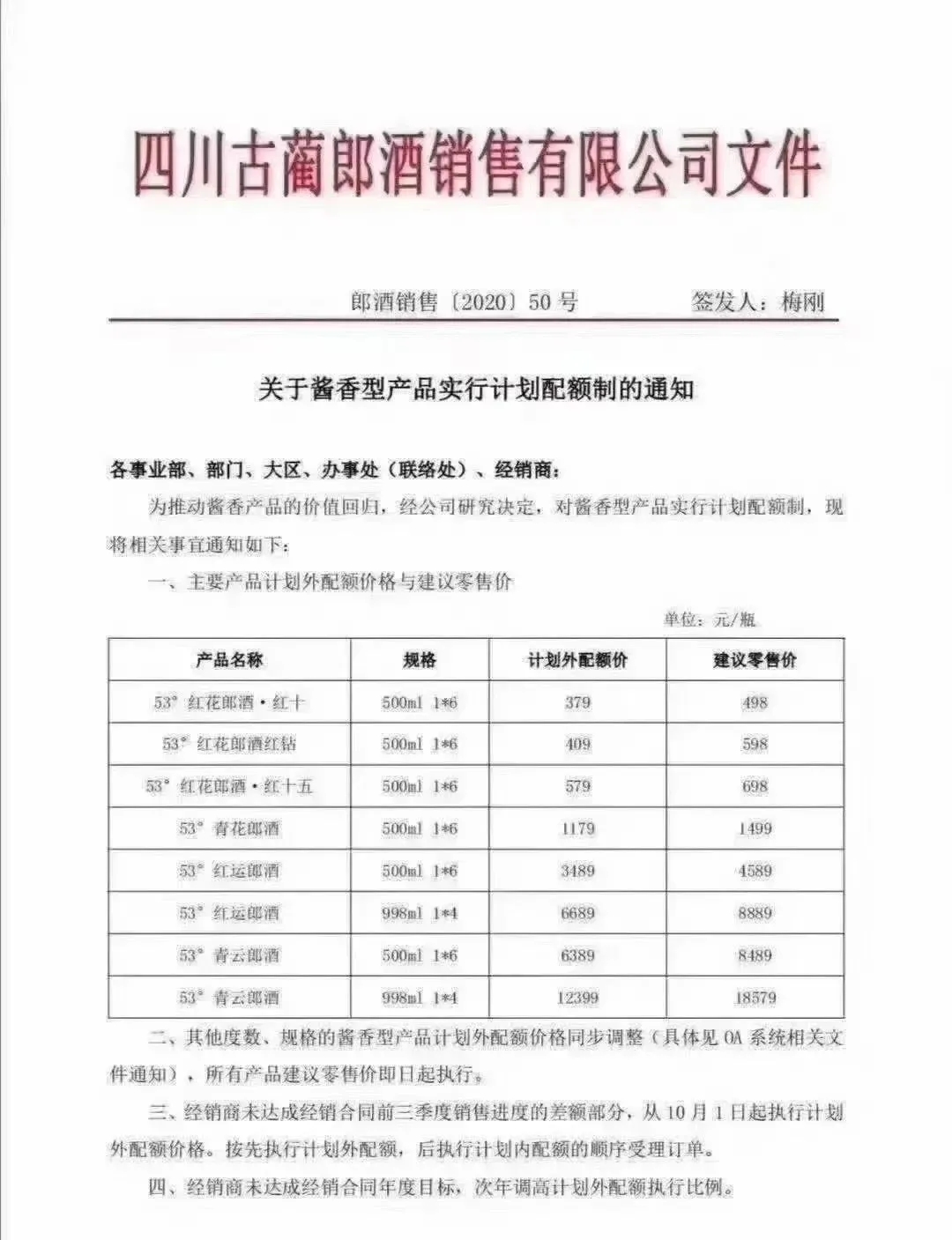 国台国标酒12月1日开始停货;国台十五年11月1日停货、12月1日出厂价涨100元;国台龙酒10月1日停货、11月1日出厂价涨200元。