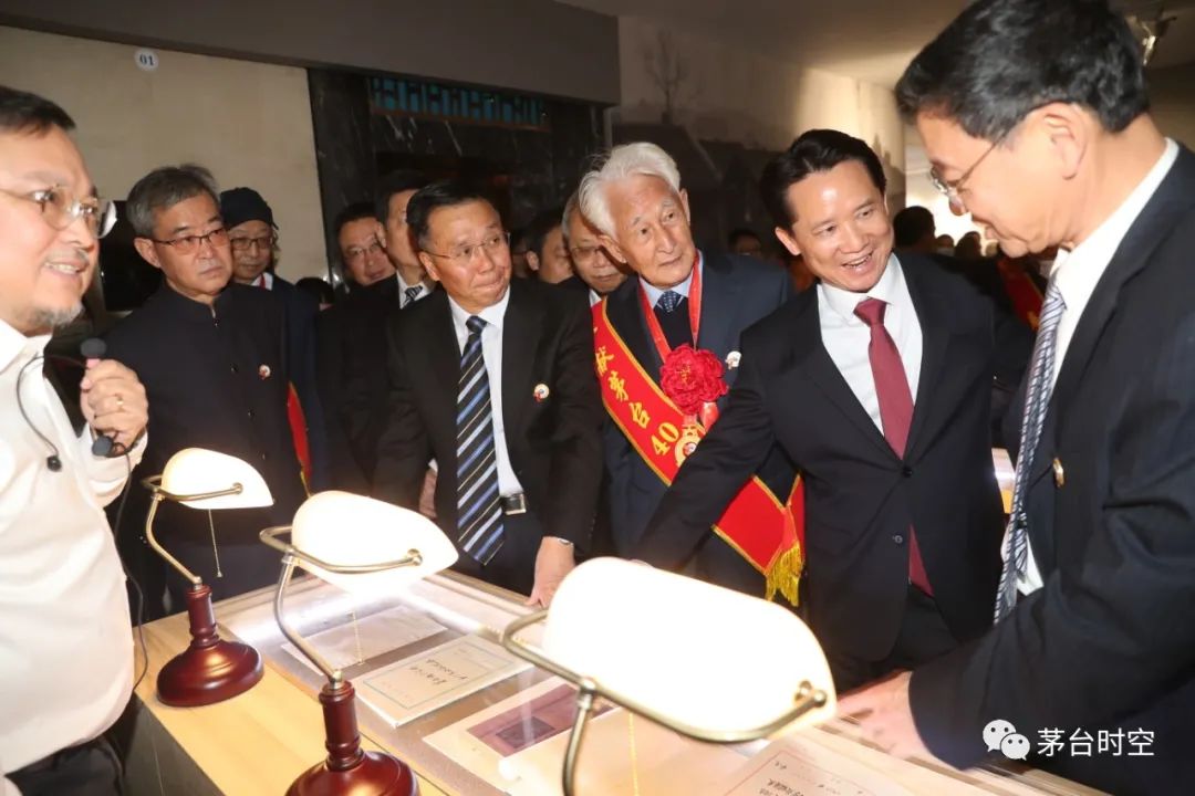 11月8日下午,茅台集团党委书记、董事长丁雄军,集团党委副书记、总经理李静仁率众高管,陪同曾经在茅台工作过的老领导陈敏、邹开良、季克良、李保芳、高卫东、赵书跃、杨良全、王焱、丁德杭、吕云怀、戴传典、张德芹等一起走进展厅,专注聆听讲解,仔细观看展品。