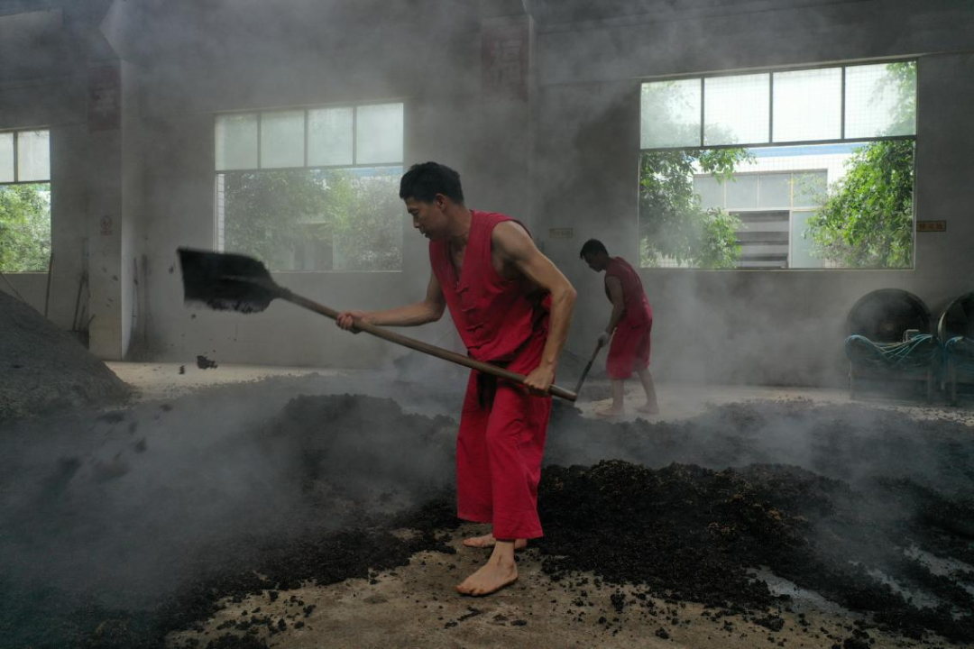 正因为这种特殊的”高温“因素,几百年来勤劳又聪明的仁怀人都是凌晨三四点上工,无论是制曲师还是酿酒师,每天连续四五个小时在高温高湿的车间与微生物亲密作伴,午饭后下工,尽量避开午后的炎热,一年一年周而复始。这也是为什么好多酱酒企业回厂游多数安排在上午参观的原因之一。