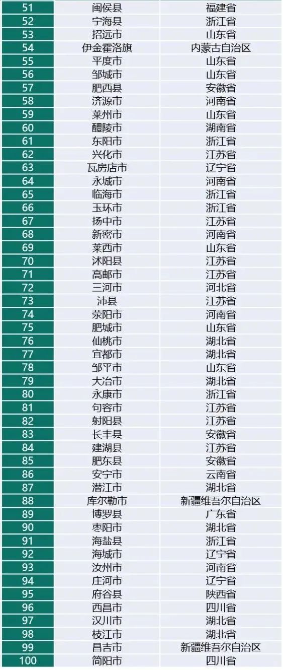 一个跻身榜单的县(市)