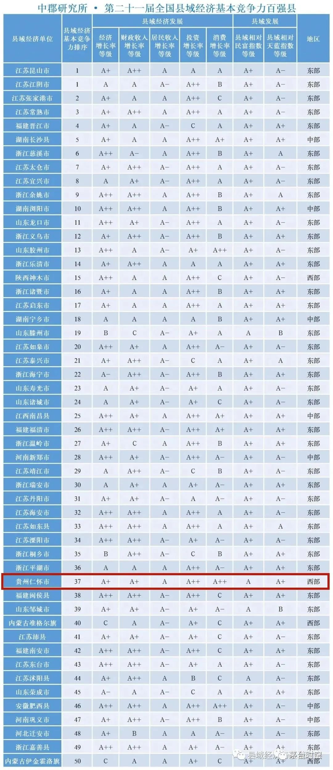 与此同时,在第二十一届全国县域经济与县域综合发展前100名的榜单中,贵州仁怀位列第28名。